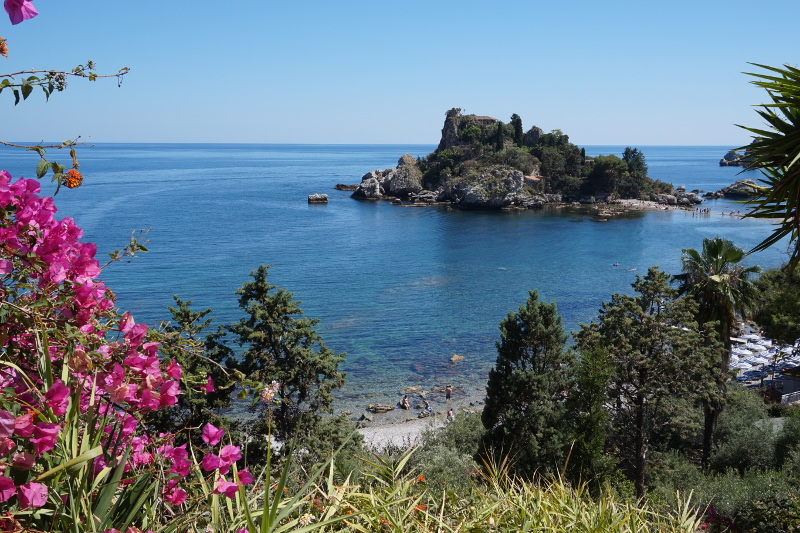 Sechster Stopp: Taormina. In jedem Reiseführer wird Taormina als der vielleicht schönste Ort Siziliens gehandelt, er ist auch wirklich zauberhaft, nur für meinen Geschmack viel zu touristisch. Ähnlich wie in Positano an der Amalfiküste, macht hier wirklich jeder Halt und darunter leidet die Authentizität. Viel besser hat mir dagegen Castelmola gefallen, das Örtchen oberhalb von Taormina, wo sich viel weniger Touristen hinverirren. Ähnlich erging es mir mit der Isola Bella, dem Strandabschnitt mit Inselchen unterhalb von Taormina. Wunderschön, keine Frage, aber die Felsen von Aci Castello sind mir lieber 🙂