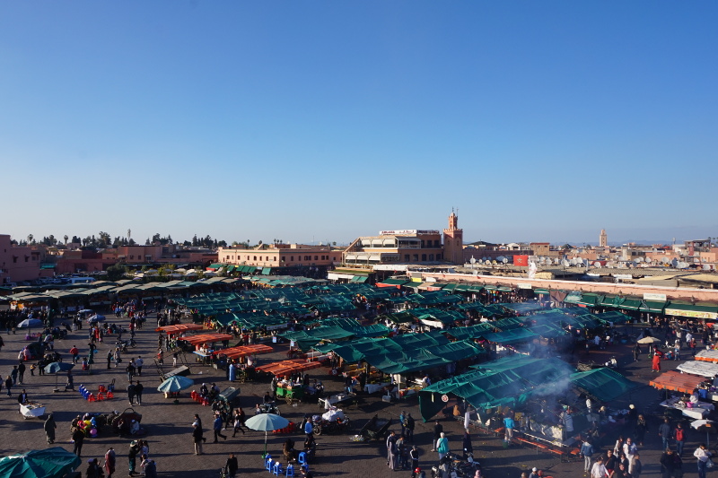 In allen Blogs wurde immer vom Djemaa el Fna geschwärmt, für mich war der Platz eher ein Lowlight. Die Händler der meisten Geschäfte und Stände sind extrem penetrant und aggressiv, die dressierten Affen an der Leine waren für mich eher bemitleidenswert als sehenswert, genau wie die Schlangenbeschwörer mit ihren Kobras. Das Ganze kam mir vor wie eine bizarre Show, die nur für die Touristen aufgeführt wird und wir haben den Platz deshalb auch so gut es ging gemieden.