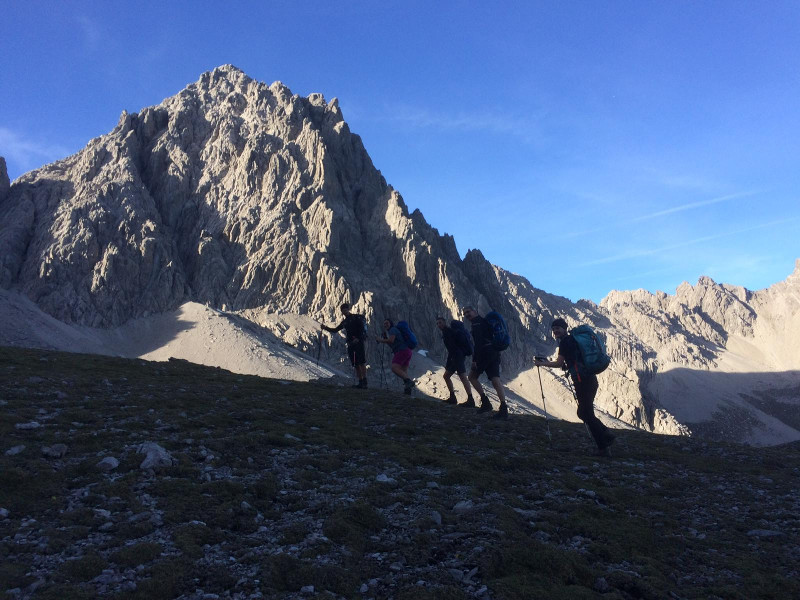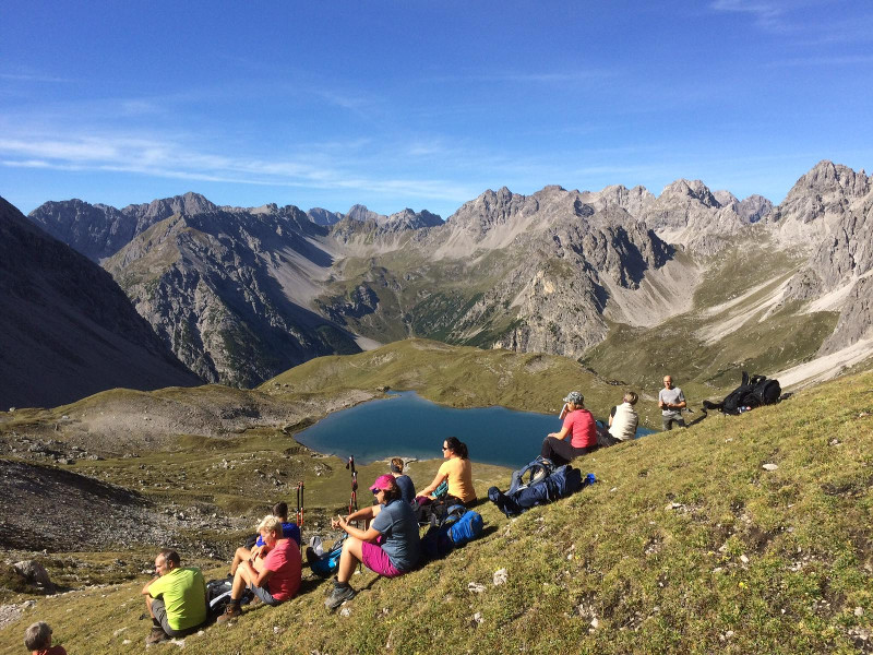 Definitiv ebenfalls ein Highlight, denn besser ging es nicht. Die gute Stimmung lag sicherlich auch am Wetter, denn auch das hätte nicht besser sein können: 20 Grad und strahlend blauer Himmel auf 2.000 Metern (und das 6 Tage lang), lassen keine Wünsche offen. Aber auch so hat es einfach gepasst und man hat richtig gemerkt, wie wir von Tag zu Tag mehr als Gruppe zusammengewachsen sind. Wir haben unglaublich viel gelacht, uns gegenseitig motiviert und füreinander gefreut und die Alpenüberquerung wirklich gemeinsam als Gruppe bewältigt. Das hat unglaublich stolz gemacht und zusammengeschweißt.