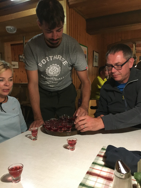 Durfte an keinem Abend fehlen: Der Zirbenschnapps-AbsackerDie Wanderführer